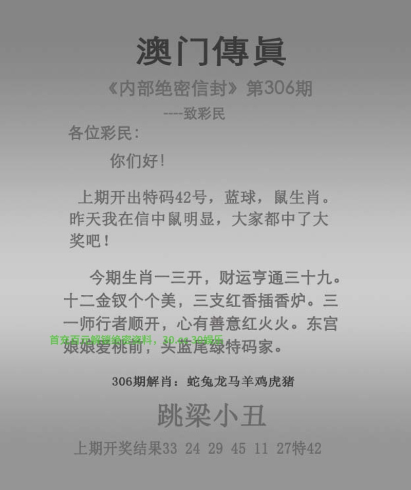 | 308期:独解传真 解:正在更新 送:正在更新 主特:正在更新  |
